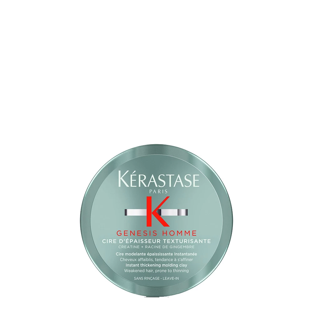Cire d’Épaisseur Texturisante Genesis Homme Kérastase 75ml : cire modelante épaississante instantanée pour cheveux affaiblis, ayant tendance à s’affiner. À la Créatine + Racine de Gingembre.