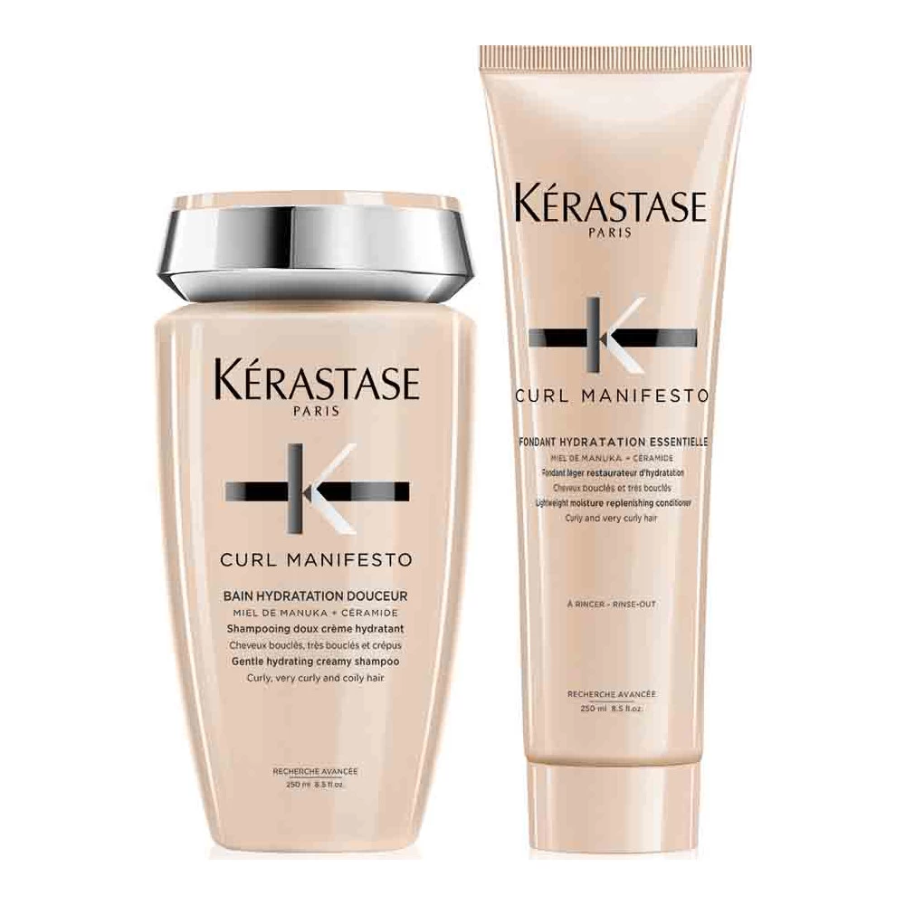 Duo Fondant Curl Manifesto Kérastase : un Bain Hydratation Douceur 200ml et un Fondant Hydratation Essentielle 250ml pour cheveux bouclés, très bouclés et crépus.