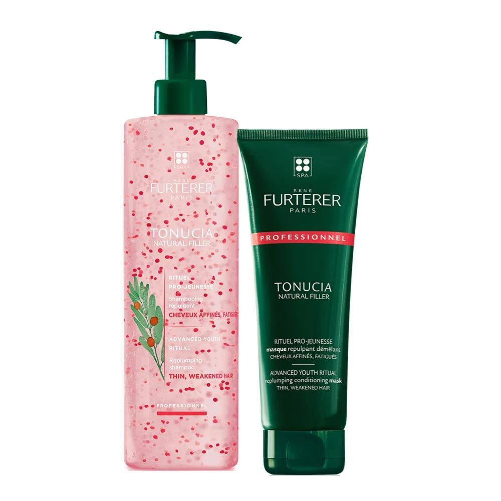 Duo Shampooing 600ml Et Masque 250ml Repulpant Tonucia René Furterer pour les cheveux affinés et fatigués.