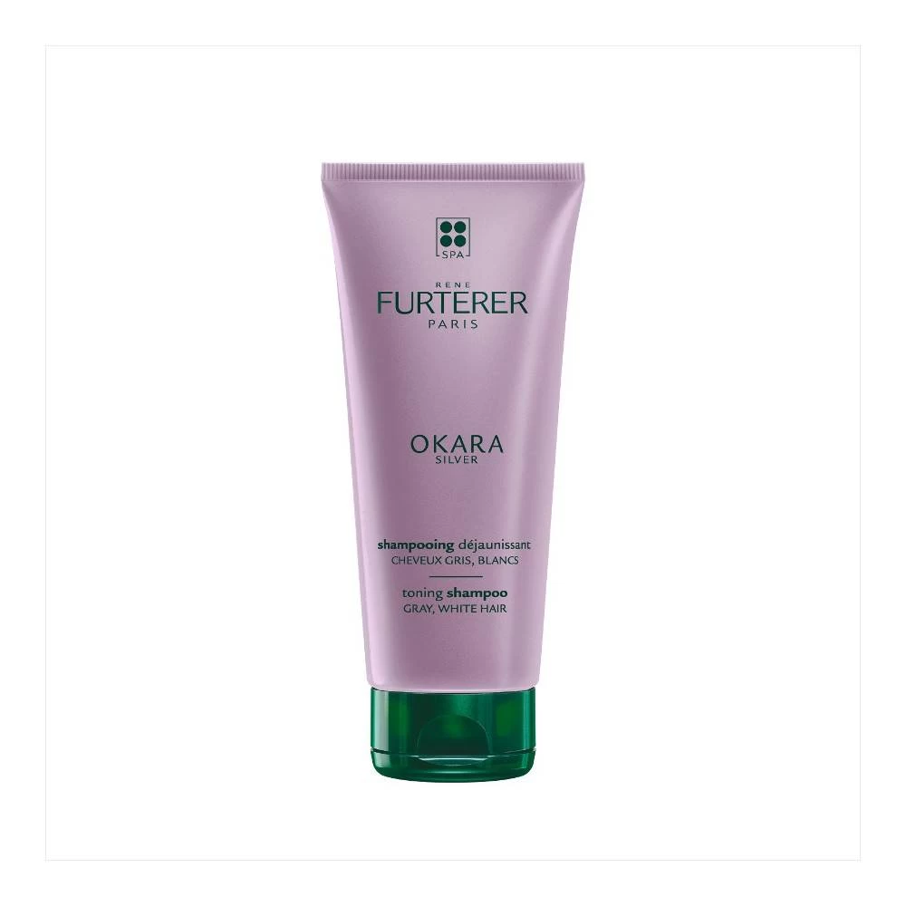 Shampooing Déjaunissant Okara Silver René Furterer 200 ml pour cheveux gris, blanc ou blanc platine. Le shampooing à l’effet déjaunissant immédiat. À l’Extrait d’origine naturelle d’Okara et sans silicone.
