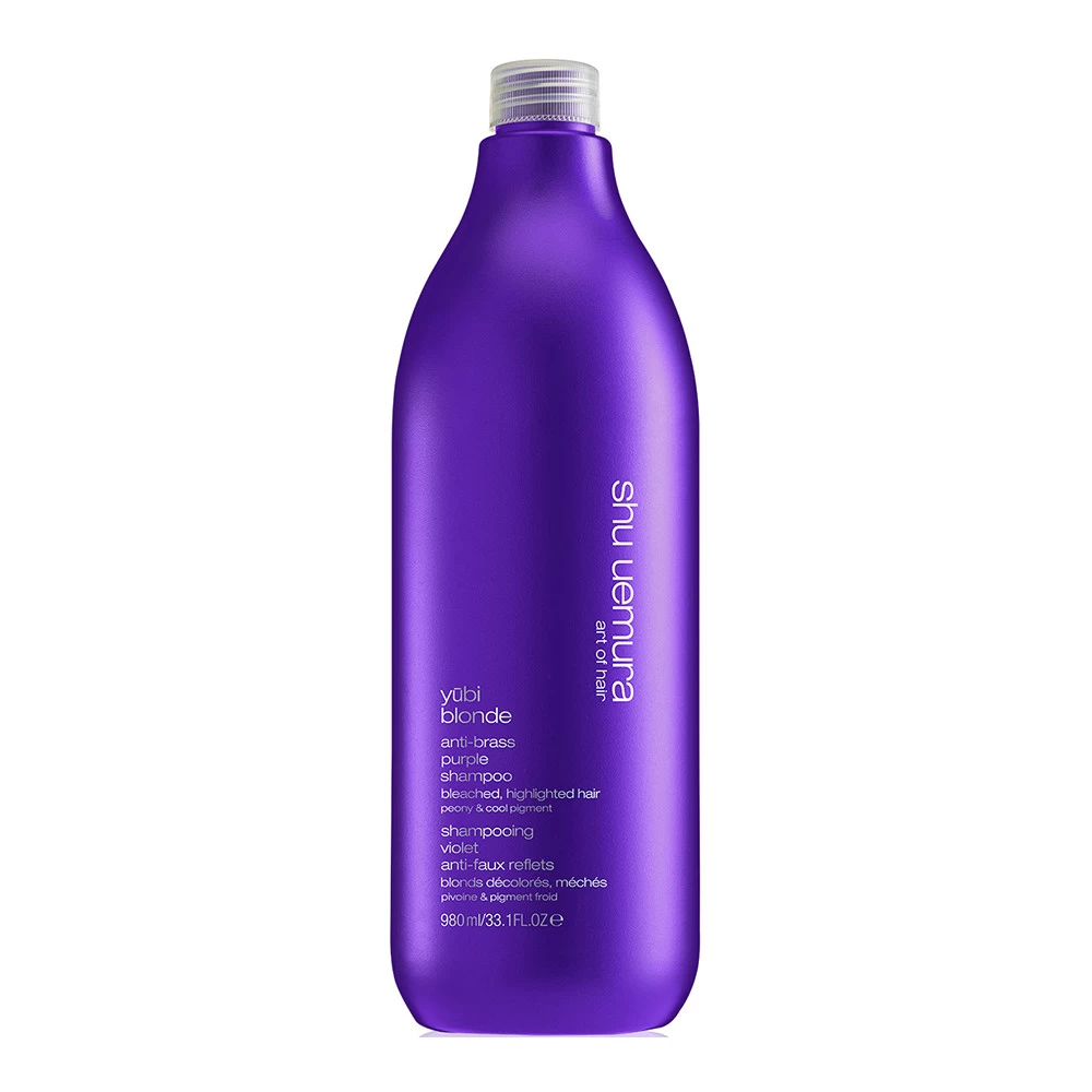 Shampooing Violet Anti-Faux Reflets Yubi Blonde Shu Uemura Art Of Hair pour cheveux blonds décolorés, méchés.